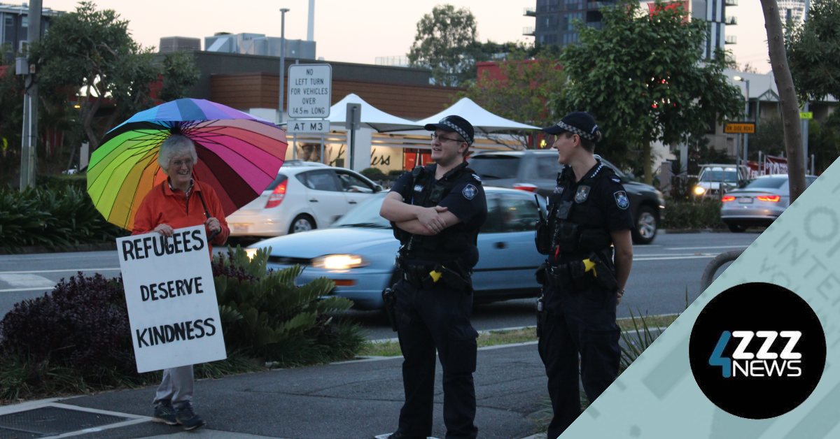 For the past seven weeks, socially distanced demonstrators have been donning masks and gloves to protest the indefinite detention of asylum seekers at a Kangaroo Point Hotel.